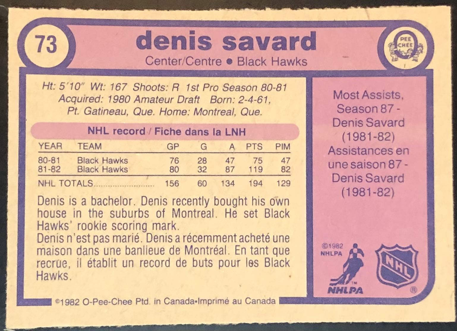 Card #73 NHL, hockey, vintage, hall of fame, OPC