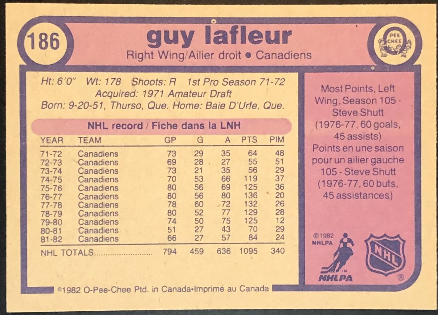 Card #186 NHL, hockey, vintage, OPC, hall of fame