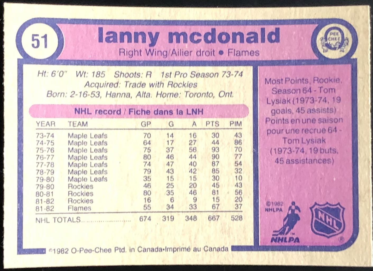 Card #51 NHL, hockey, vintage, OPC, hall of fame