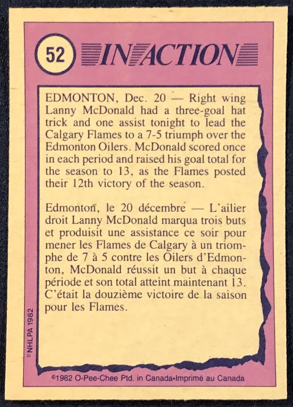 Card #52 OPC, NHL, hockey, vintage, hall of fame