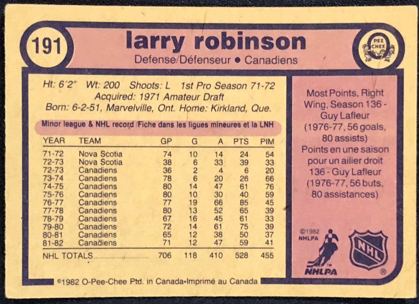 Card #191 OPC, NHL, hockey, vintage, hall of fame
