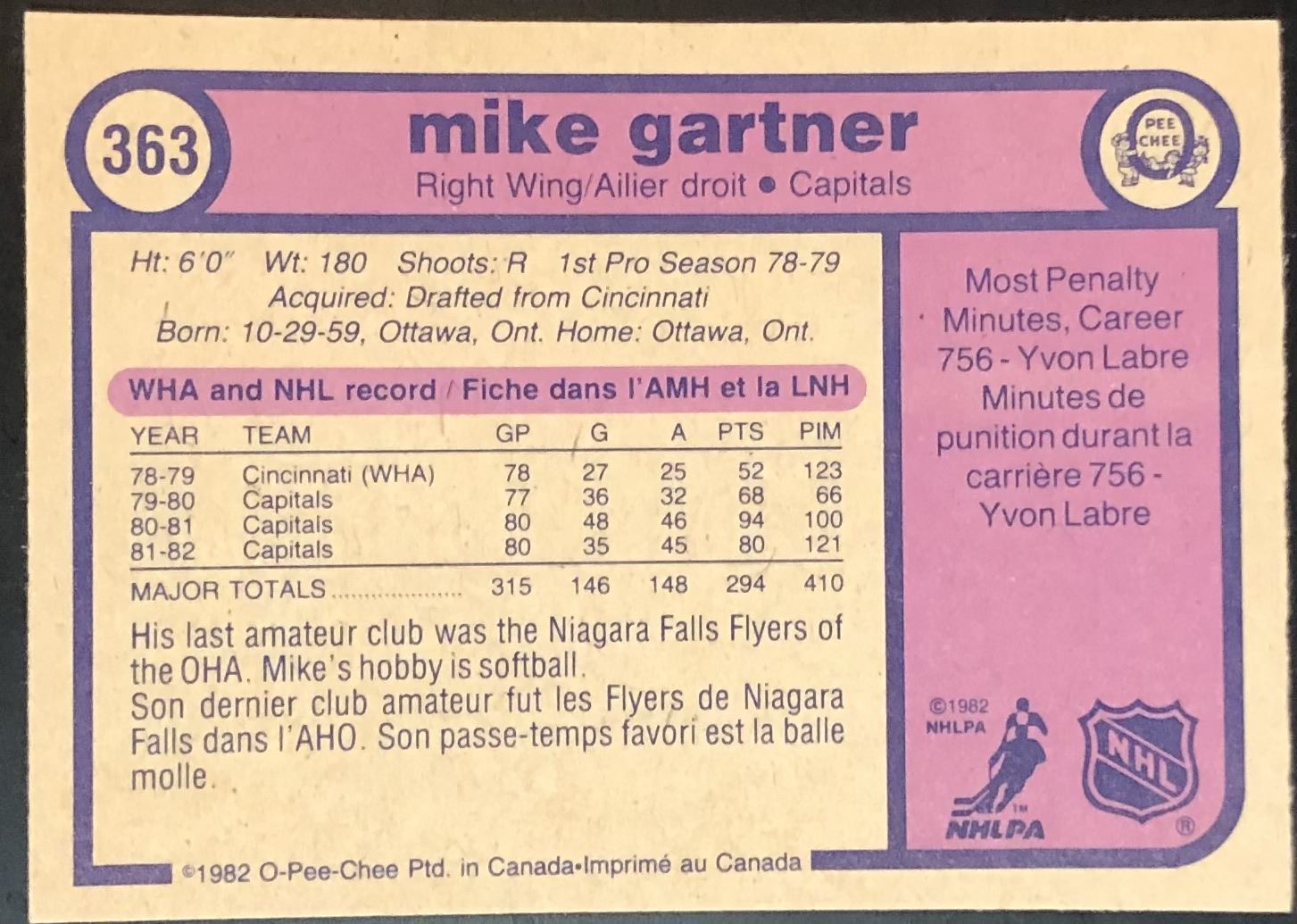 Card #363 NHL, hockey, vintage, hall of fame, OPC