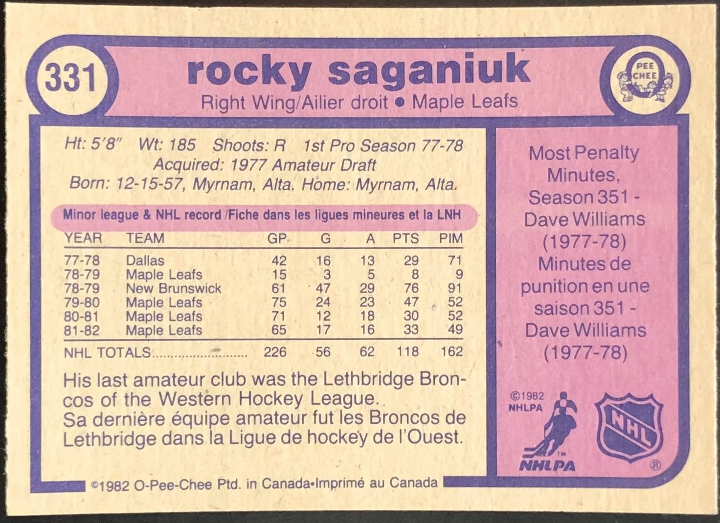 Card #331 NHL, hockey, vintage, OPC