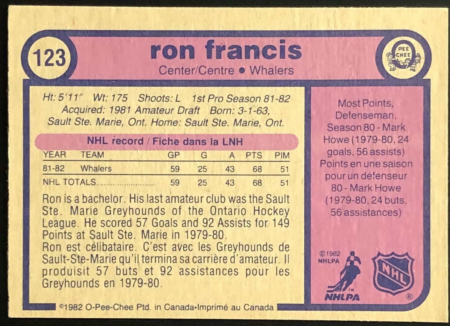 Card #123 OPC, vintage, NHL, hockey, hall of fame, rookie