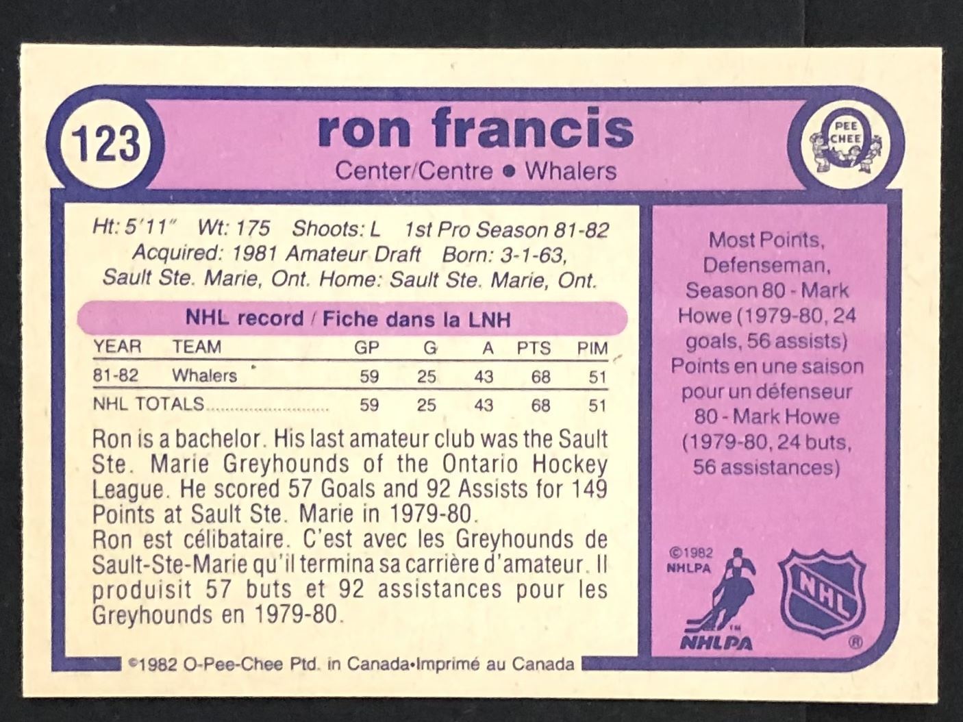 Ron Francis (RC)(HOF), '82-83 OPC, card #123