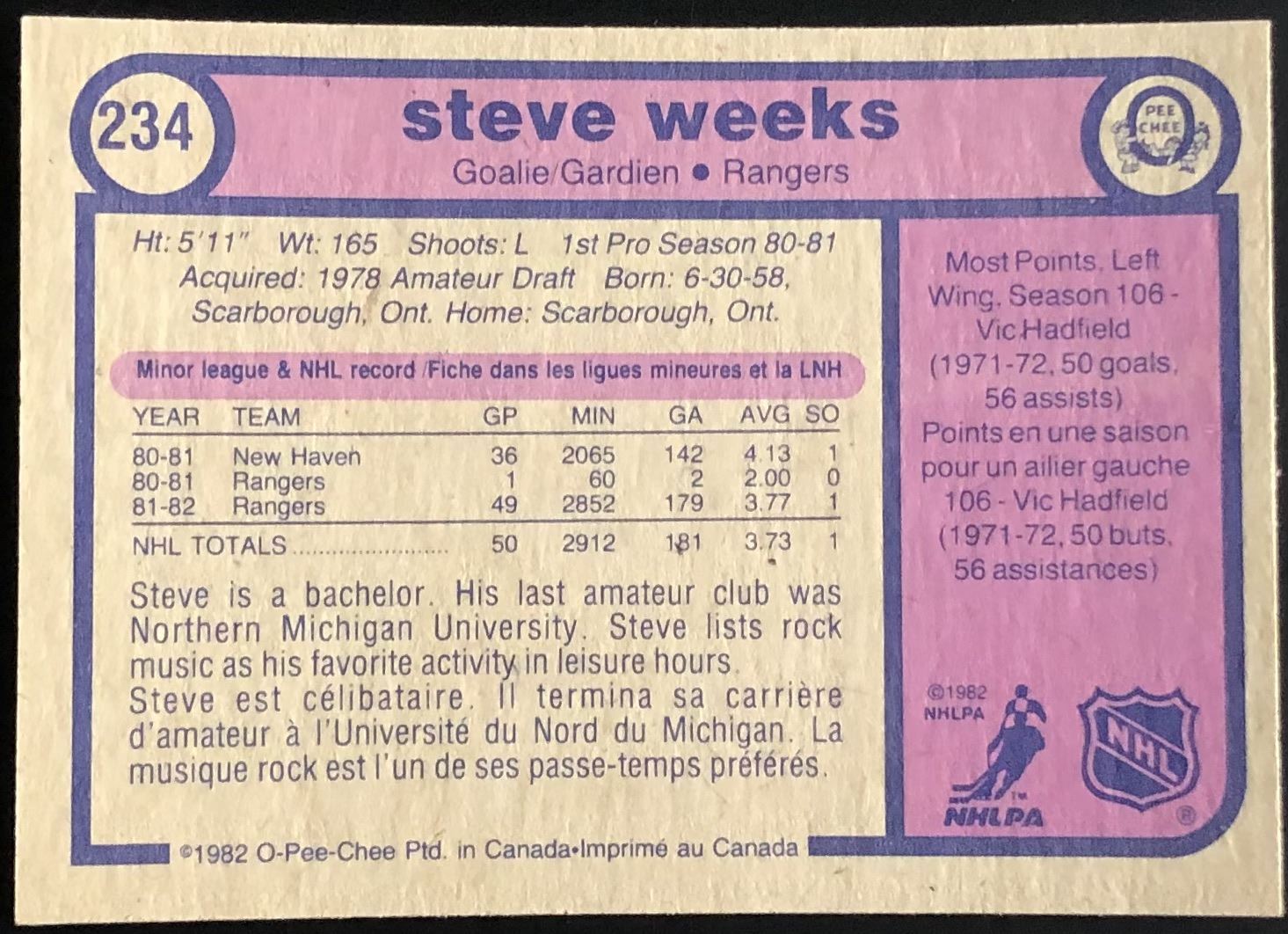 Card #234 NHL, hockey, vintage, OPC, rookie