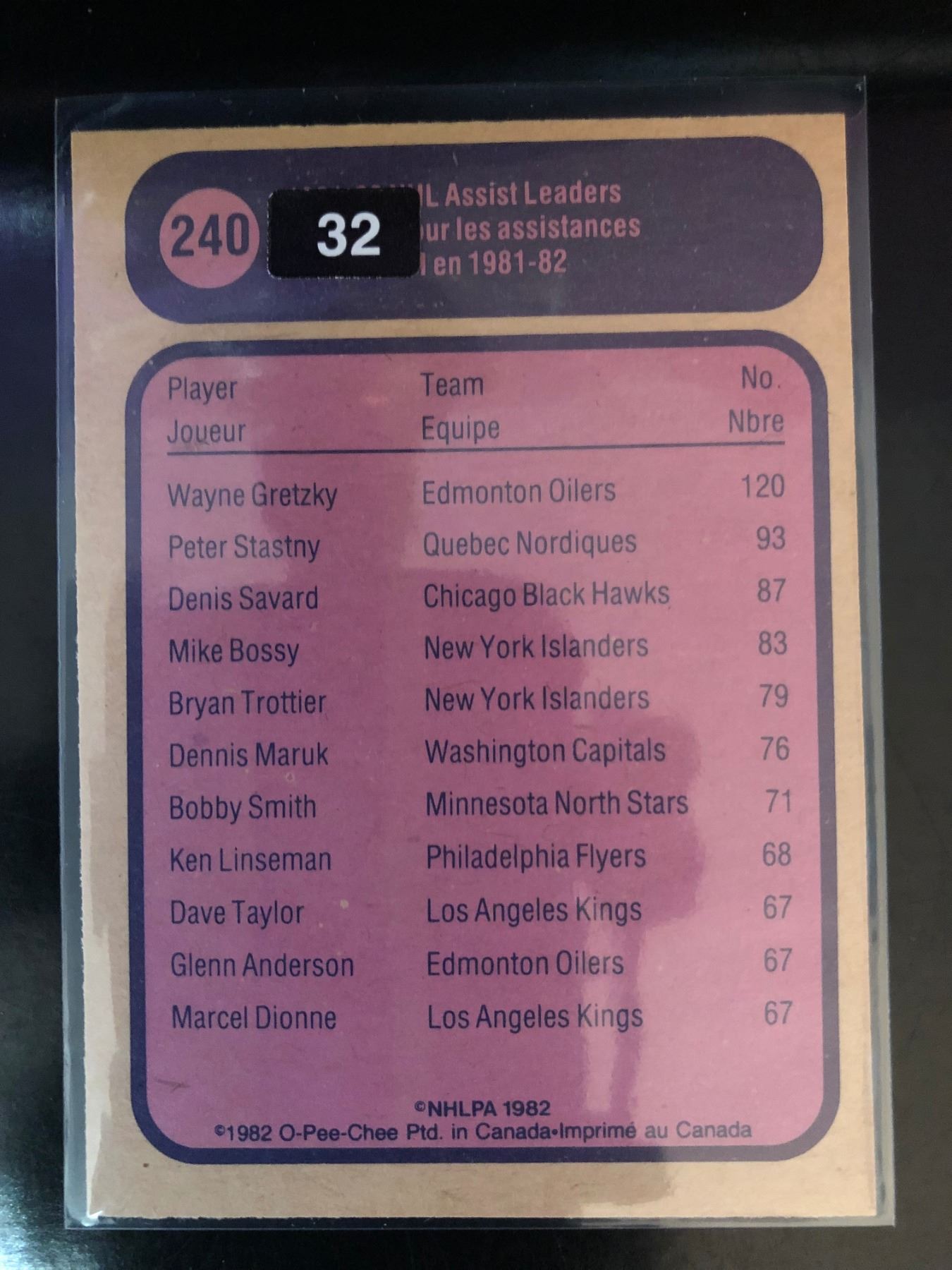 1982-83 O-Pee-Chee Wayne Gretzky #240 Assists Leader