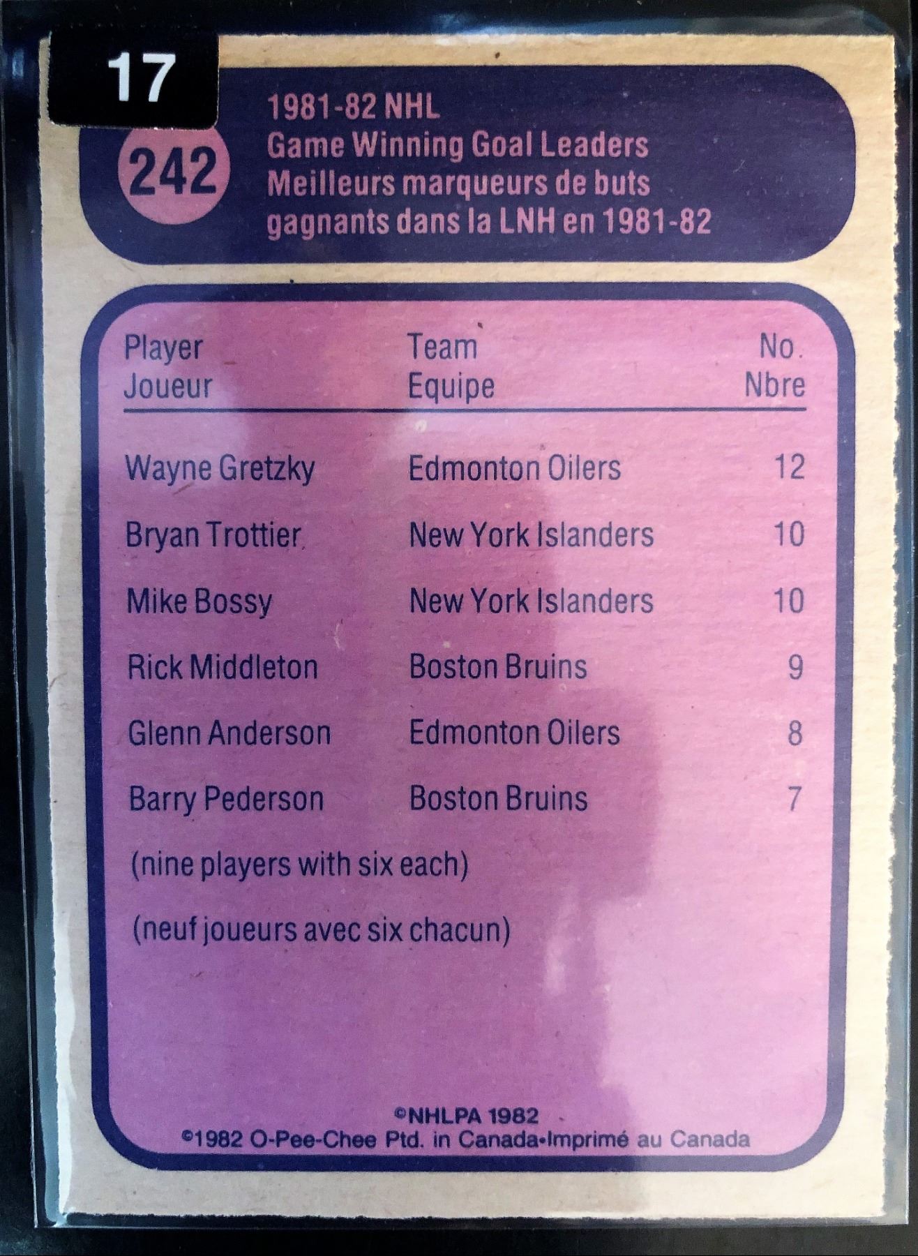 81-82 Game Winning Goal Leader