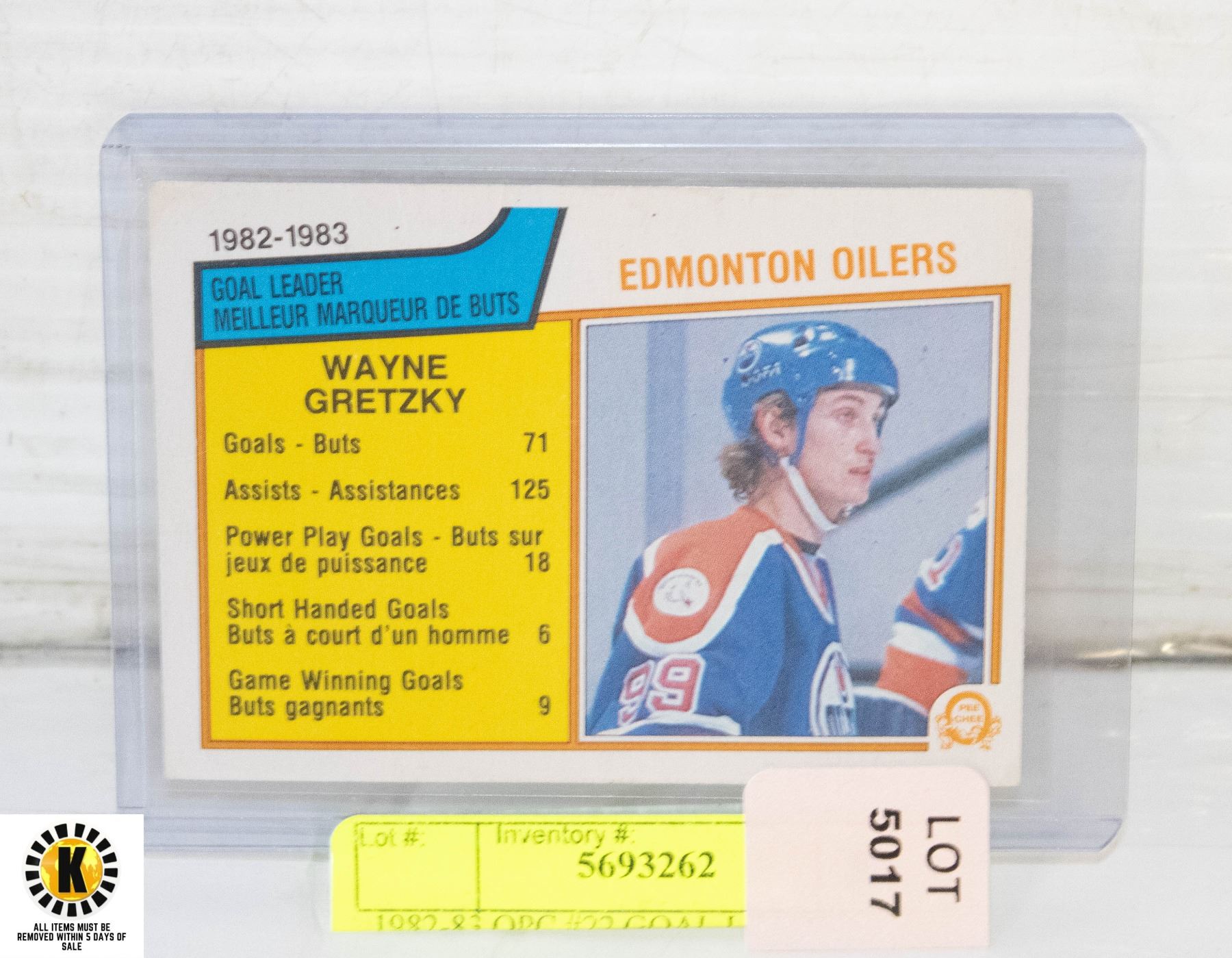 1982-83 OPC #22 GOAL LEADER WAYNE GRETZKY