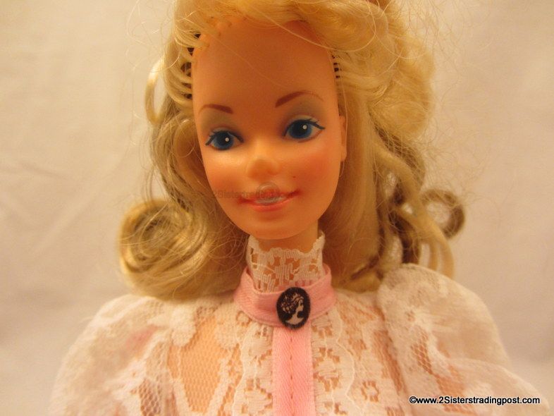 1982 Angel Face Barbie is in original white and pink gown with Cameo collar and ring. Also