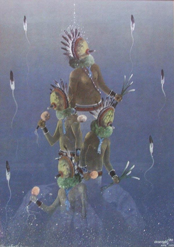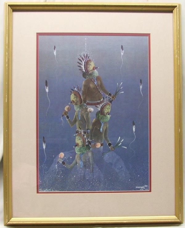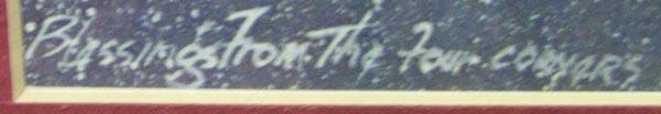 1982 C Brycelea AICA IACA Print, ''Blessings from the Four Corner'', framed, matted, and under glass. SHI $125.