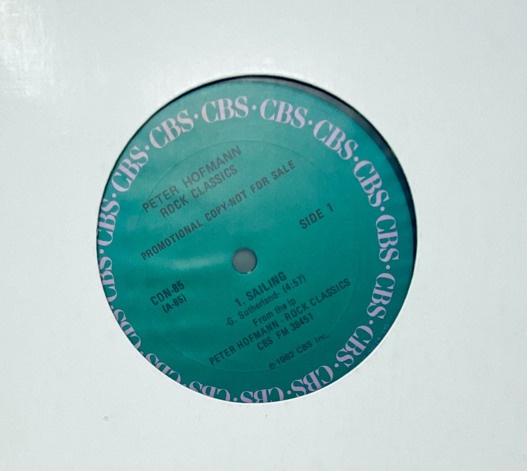 This is a rare 1982 promotional copy of Peter Hofmann’s rendition of “Sailing,†originally by Gavin Sutherland, pressed on CBS Records (CDN-85). Pulled from Hofmann’s album Rock Classics (CBS FM 38451), the record features a teal CBS label with silver print and the words “Promotional Copy – Not For Sale.†Hofmann, a celebrated operatic tenor, crossed into symphonic rock with this release, appealing to crossover collectors. The record is in Excellent condition, with the label and surface both clean.