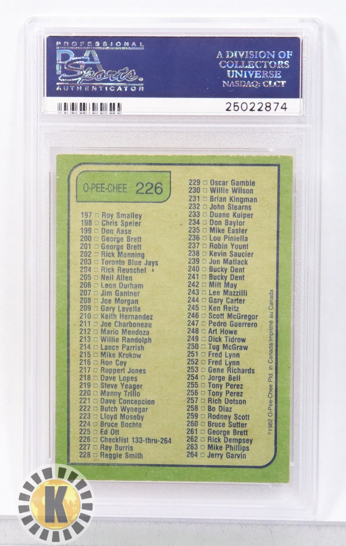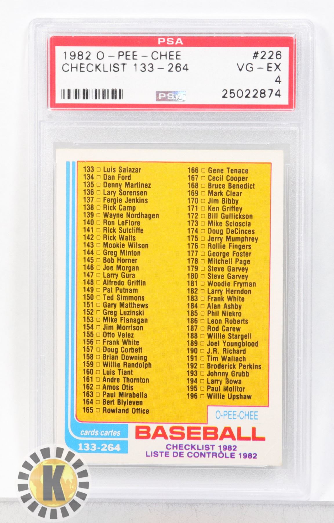 1982 CHECKLIST 133-264 PSA GRADED 4 CARD