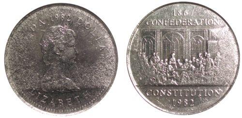 A scarce Mint Error struck on a thin 7.8gm planchet. This commemorative 1982 Nickel Constitution dollar is half the weight of the normal planchet. It was not fully struck as it has a mushy effect on the left and right hand on both sides of the coin.