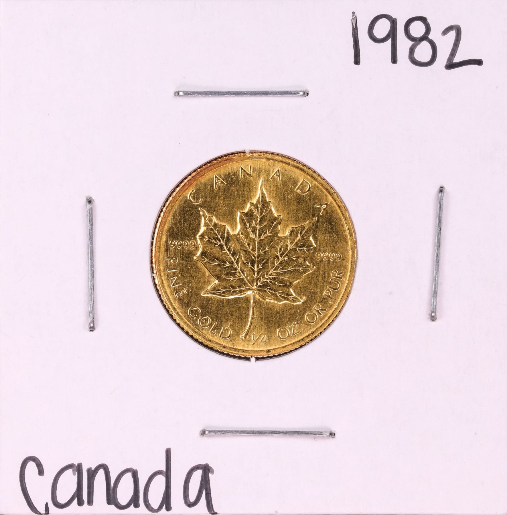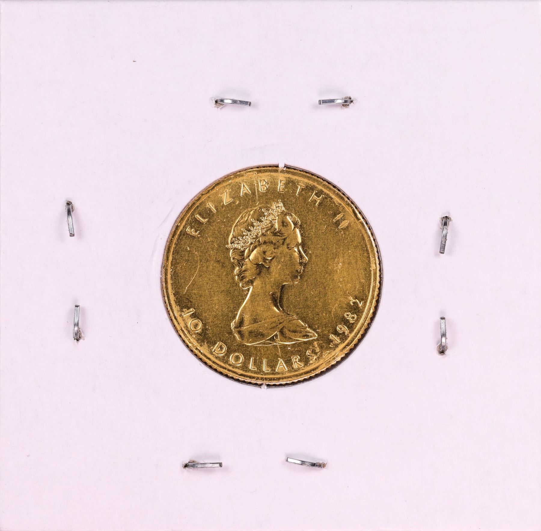 One 1982 Canada $10 Maple Leaf 1/4 oz Gold Coin.