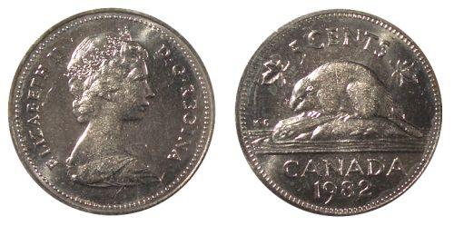 0131 - 1982 Canada Five Cents-ICCS MS65