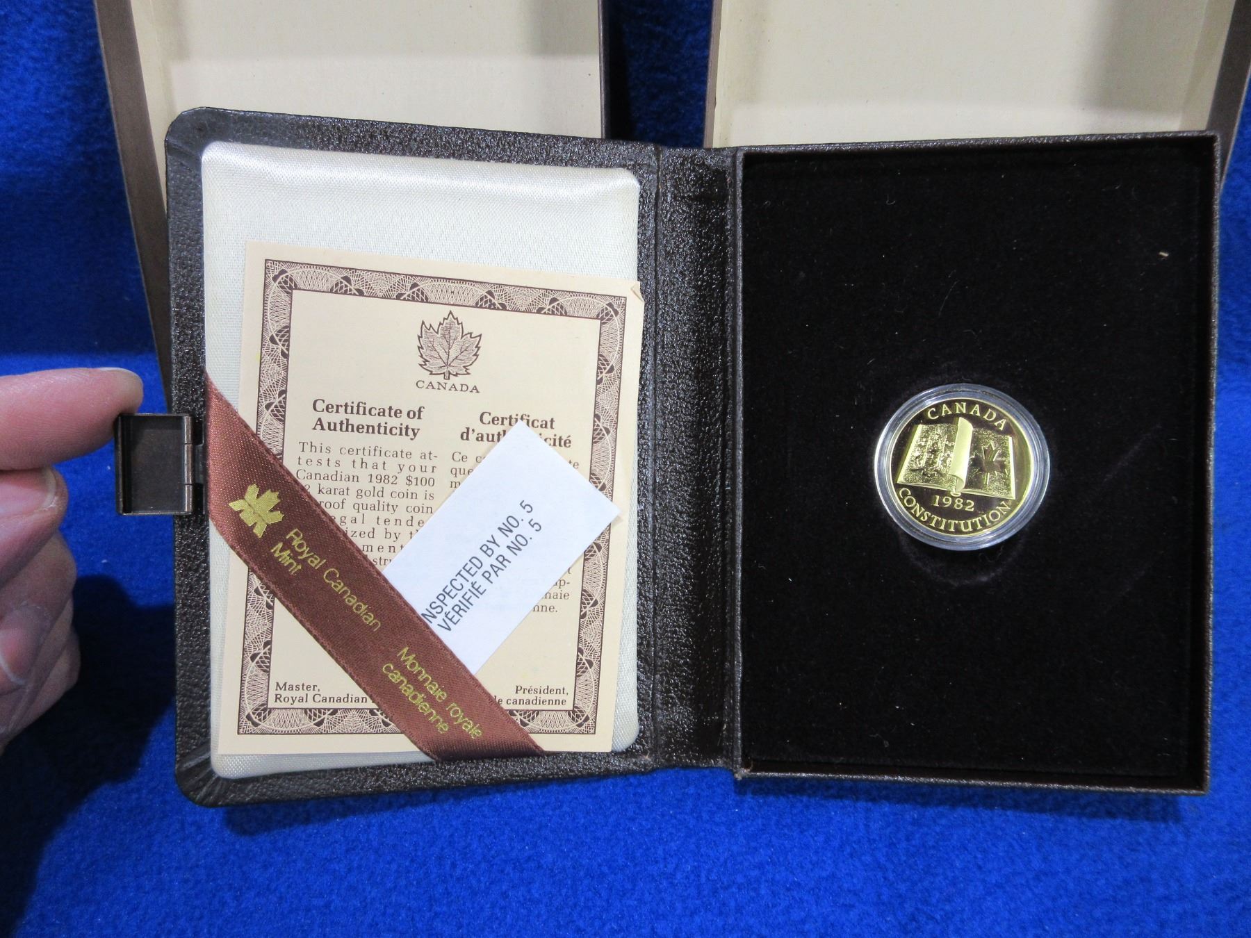 1982 Canadian $100 Dollar Proof Coin - .9167 Gold - 22 Karat Gold - Repatriation of the Canadian Constitution - In Original Box with Certification