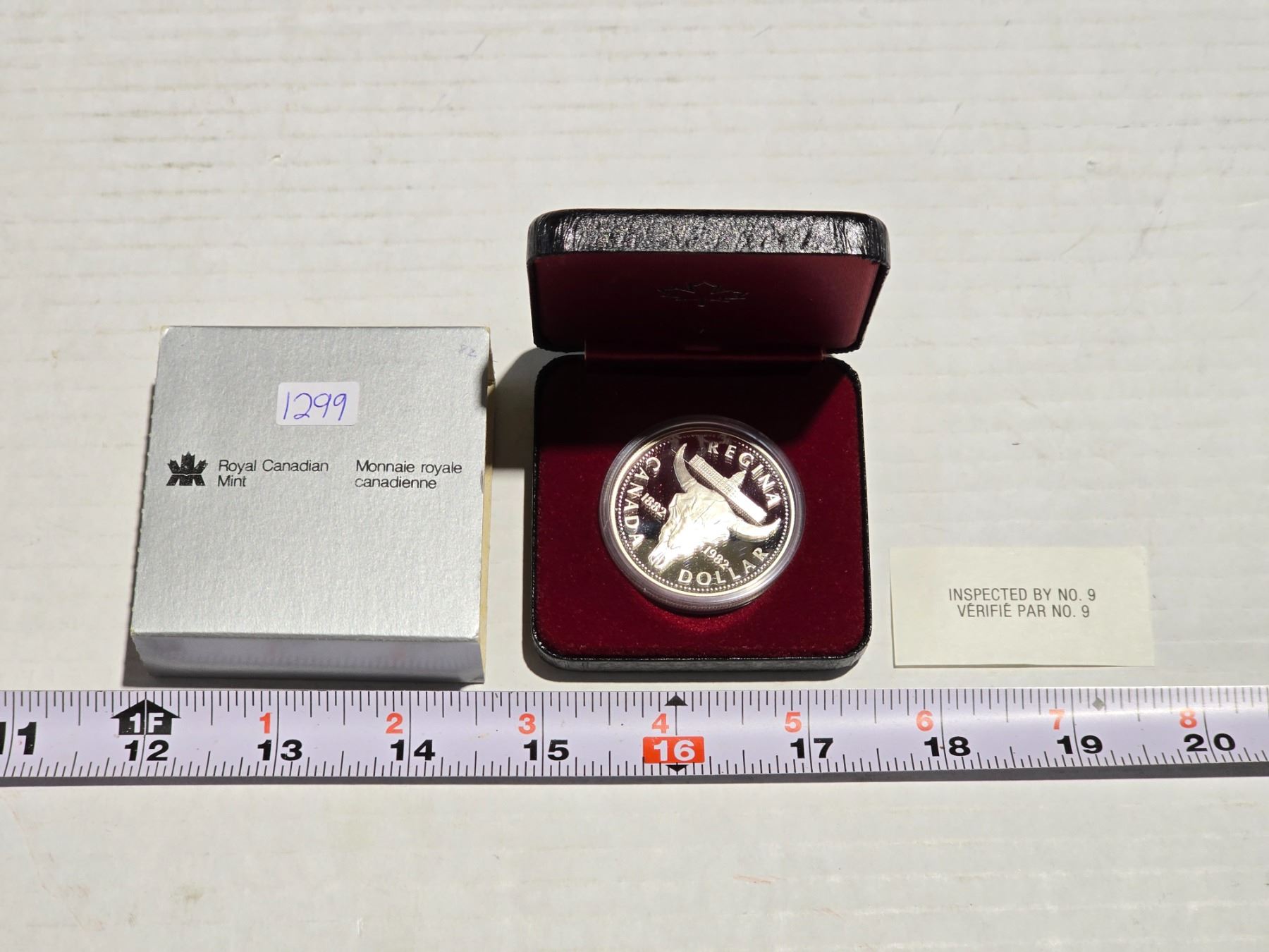 1982 Canadian "Regina" silver dollar, in RCM square case