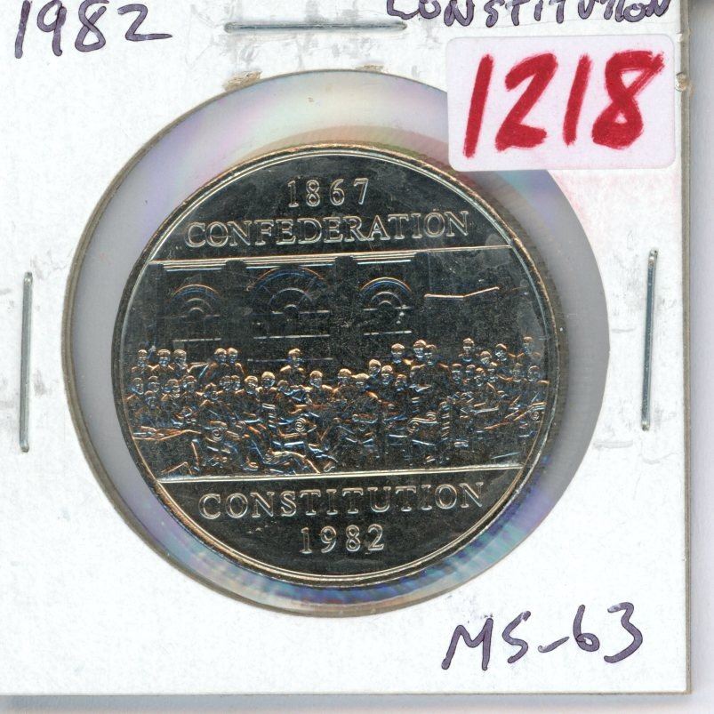 1982 Constitution Nickel Dollar. Commemorates both Canadian Confederation in 1867 as well as the Canadian Constitution in 1982. MS-63. From a Mint Roll.