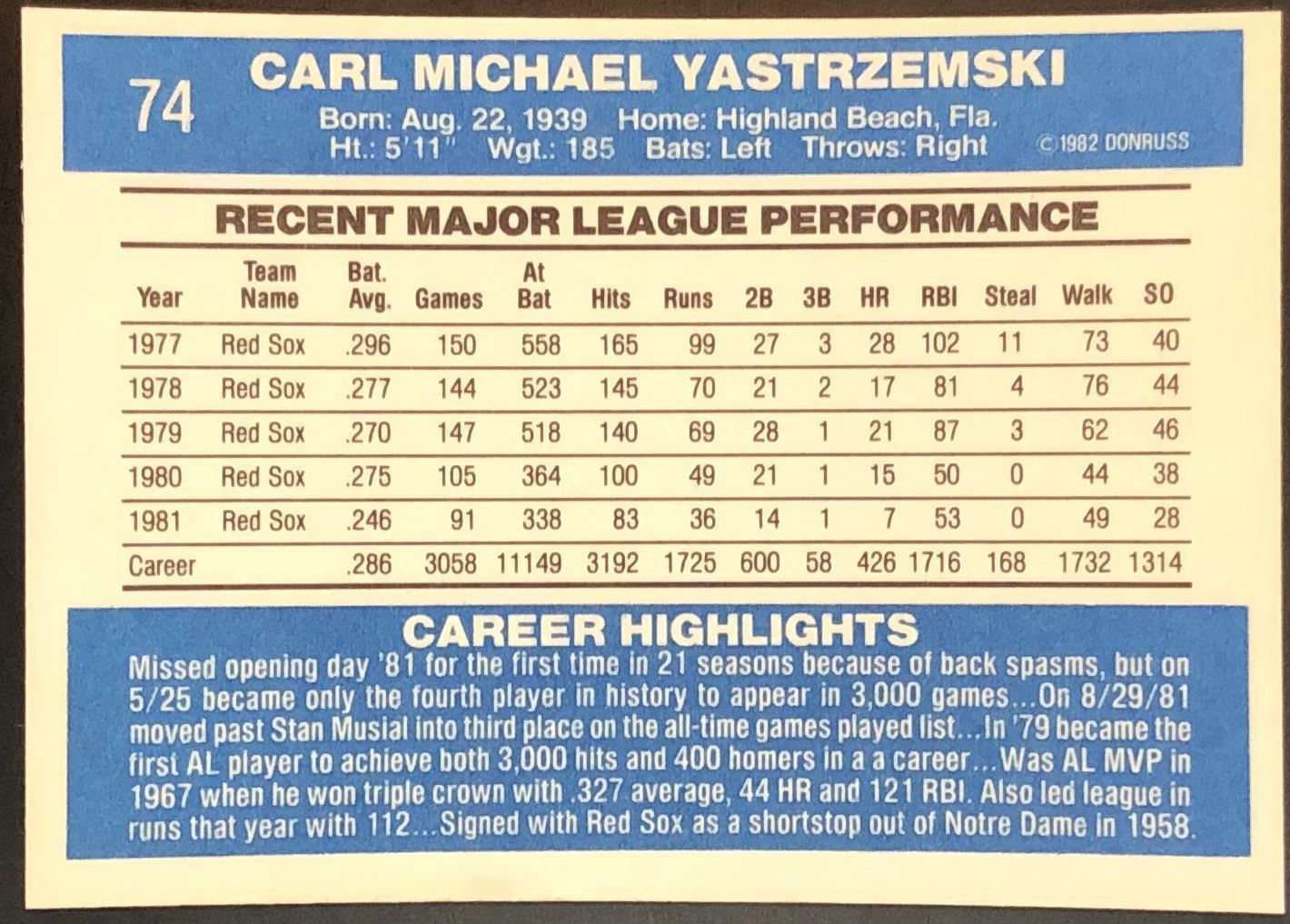 Card #74 Vintage, MLB, baseball, hall of fame