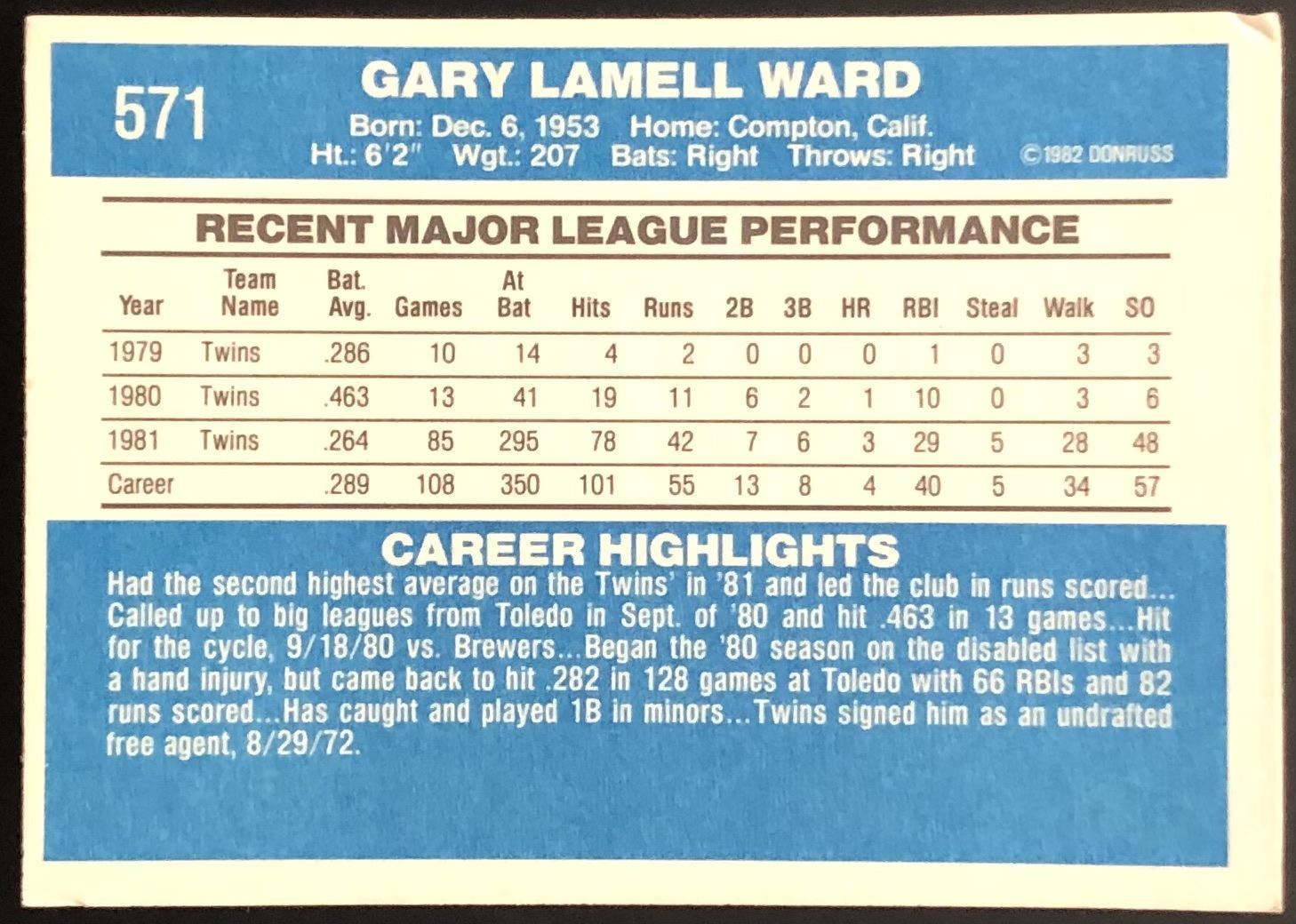 Card #571 baseball, MLB, vintage