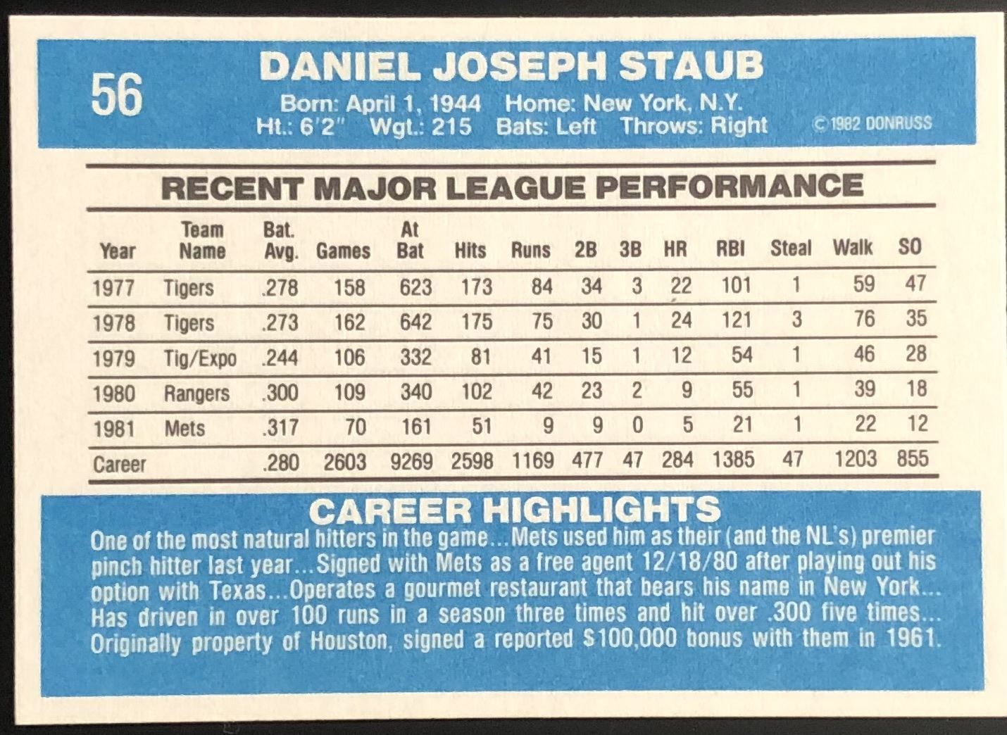 Card #56 baseball, MLB, vintage