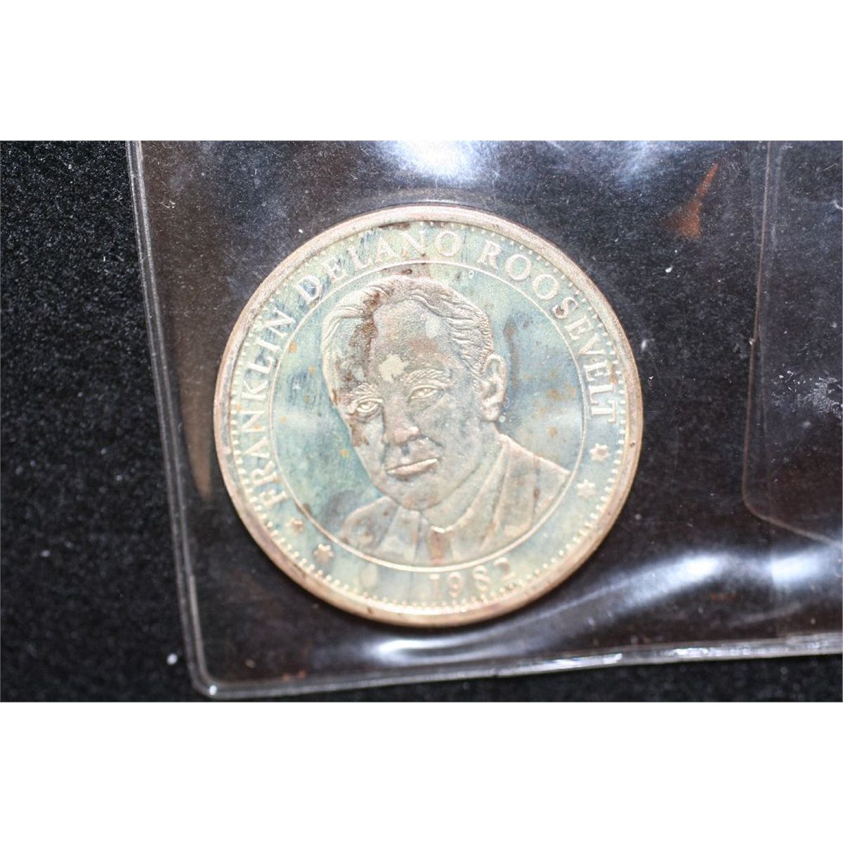 1982 First Day Issue Stamp Commonwealth of Dominica w/Commerative Silver Medal Celebrating 100th Anniv. Of Birth of FDR, .999 Fine 1 Oz.
