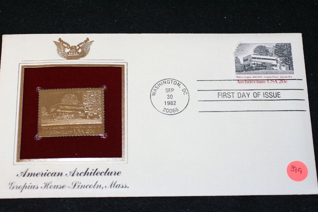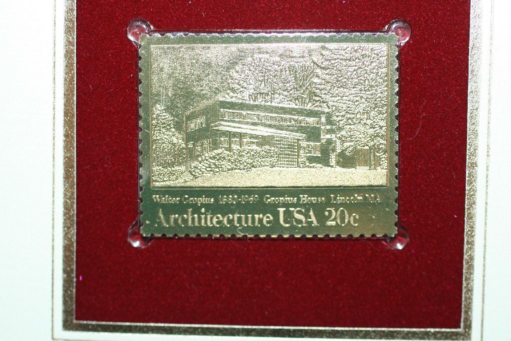 1982 First Day of Issue 22K Gold Replica Stamp W/Postal Stamp; American Architecture Gropius House-Lincoln MA