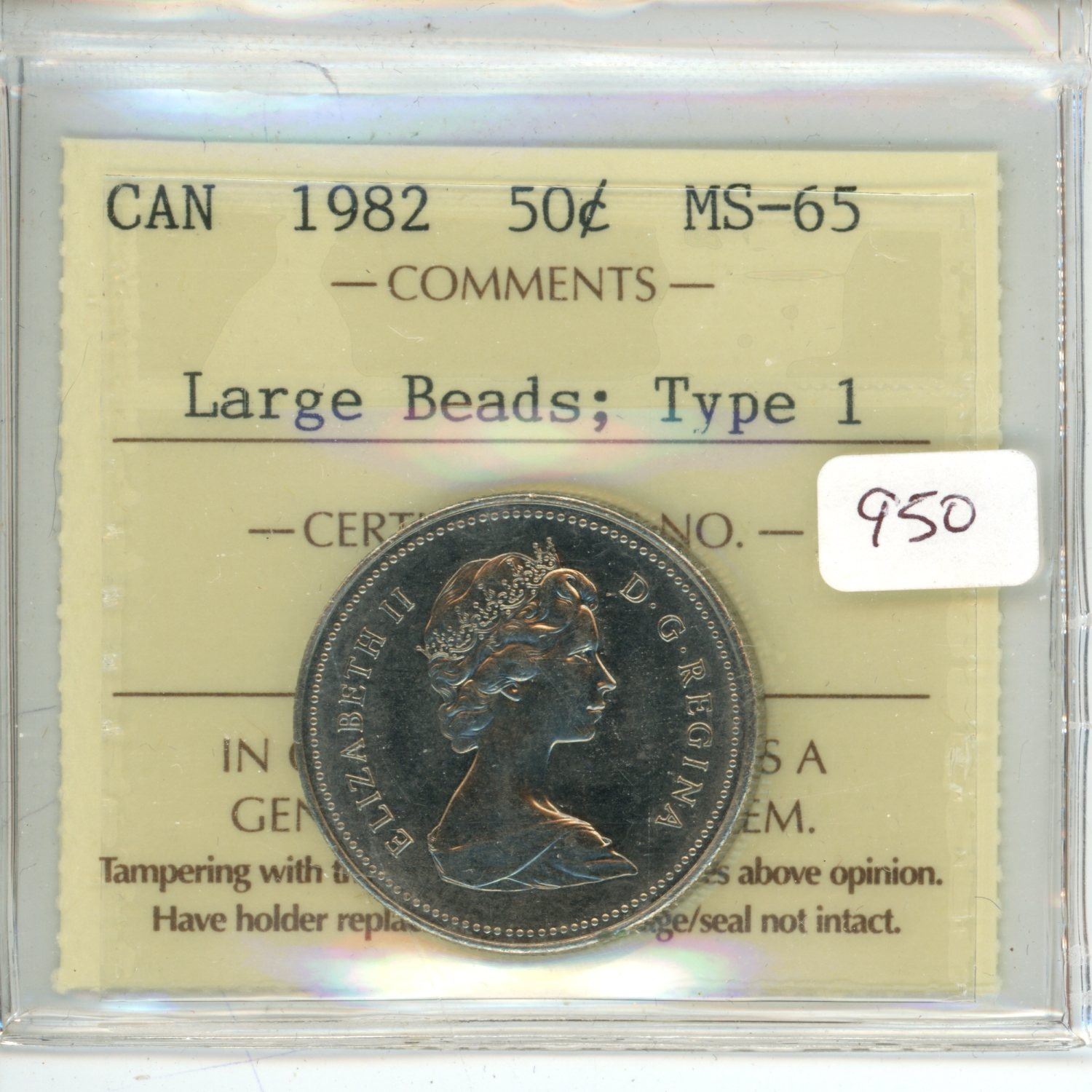 1982 Graded Canadian Half Dollar - MS-65: Large Beads; Type 1
