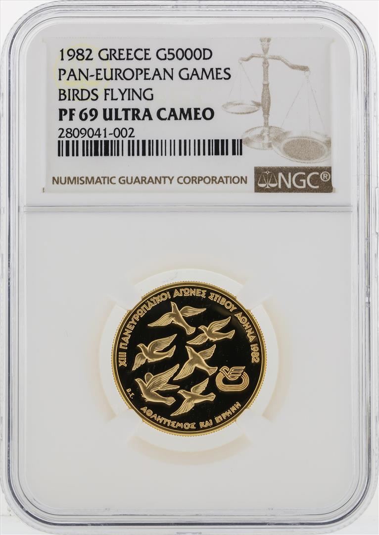 1982 Greece $5000D Pan European Games Gold Coin NGC PF69 Ultra Cameo