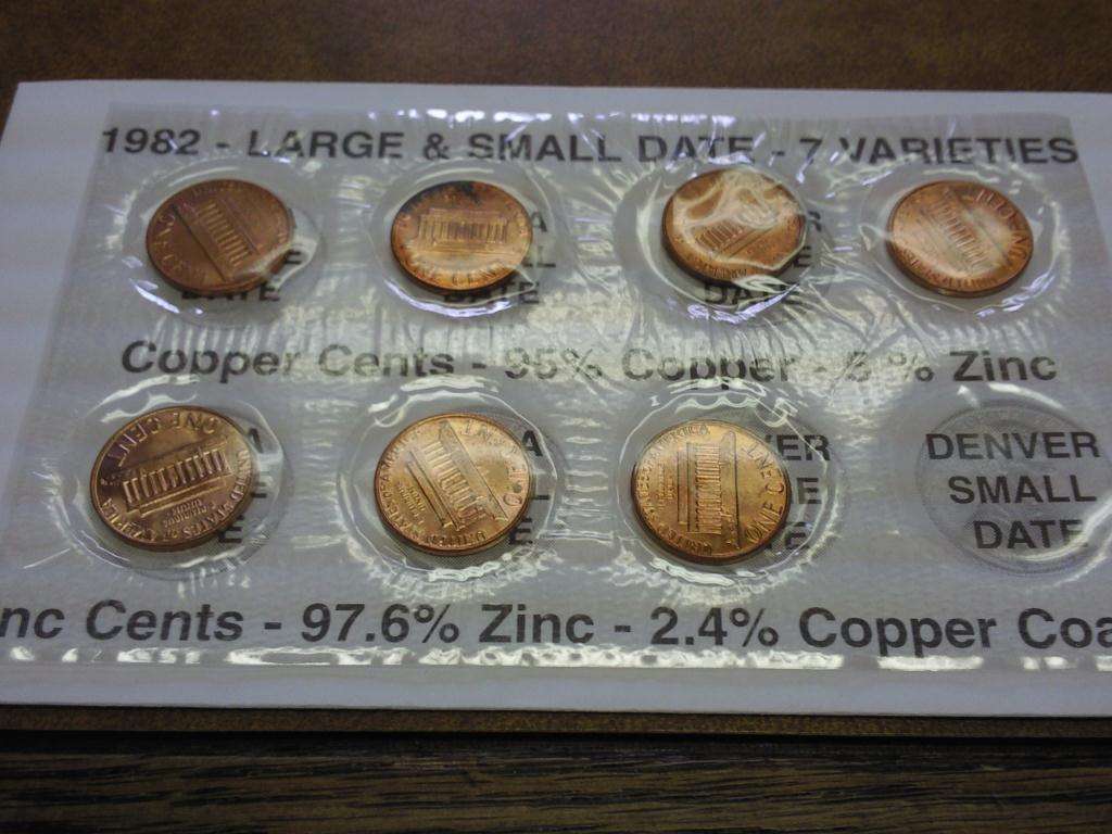 1982 LINCOLN CENT 7 VARIETIES SET (UNC)