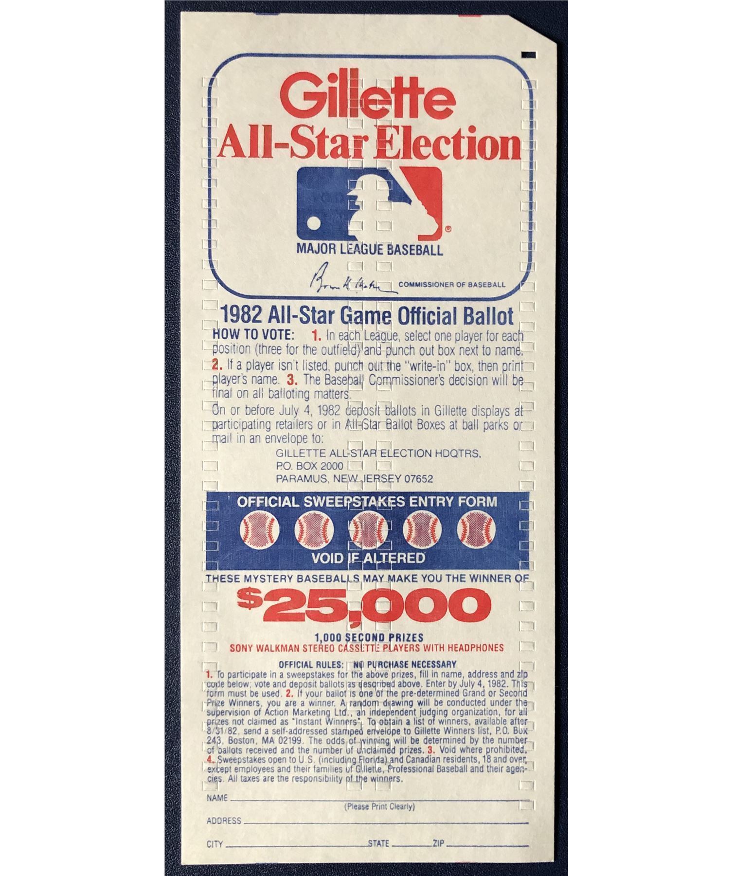 1982 MLB All Star Ballot