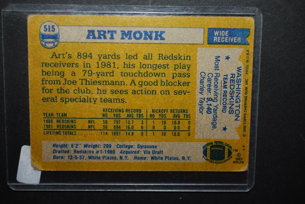 1982 NFL Art Monk Washington Redskins Football Trading Card; EST. $5-10