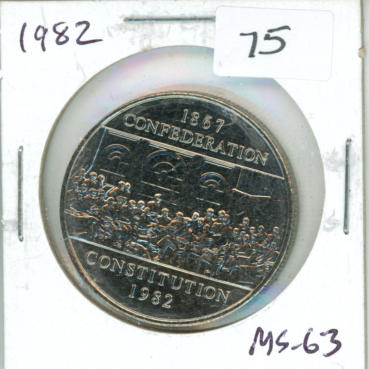 1982 Nickel Dollar. Commemorates Confederation & the Constitution of Canada. Depicts the Fathers of Confederation. MS-63 from an original roll.