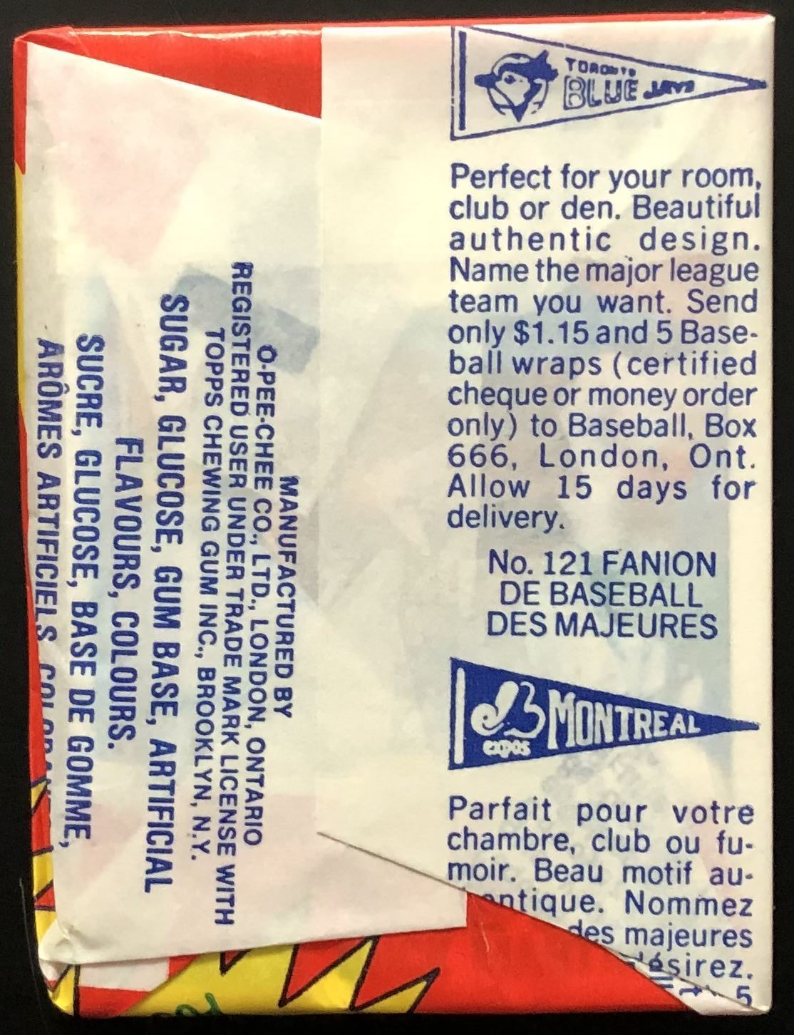 Unopened wax pack. Set includes rookie cards of Jesse Barfield, George Bell & Terry Francona