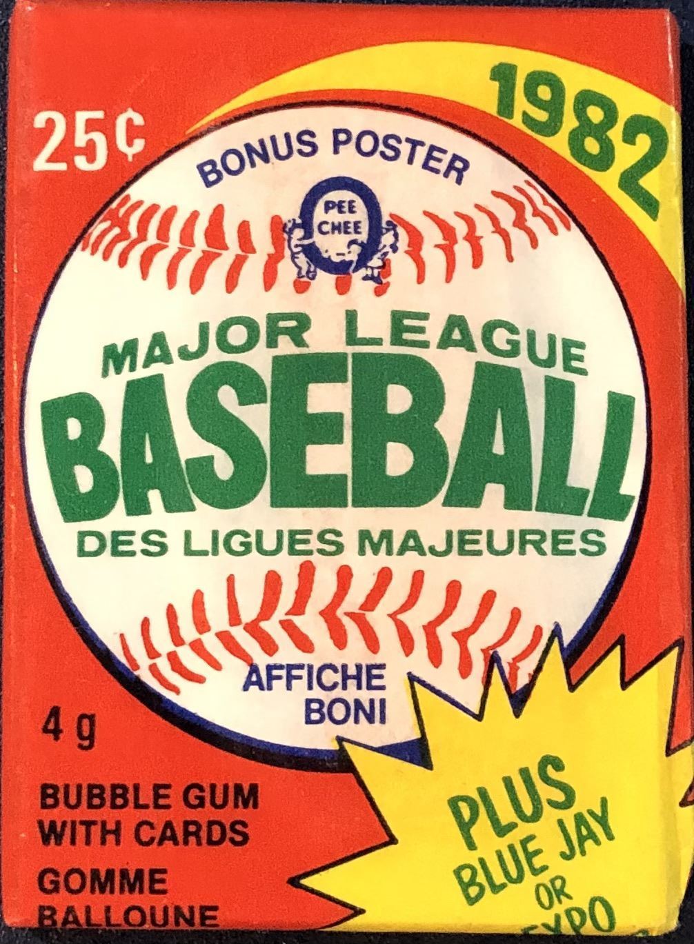 Sealed wax pack. 1982 OPC set includes rookie cards of Jesse Barfield, George Bell & Terry Francona