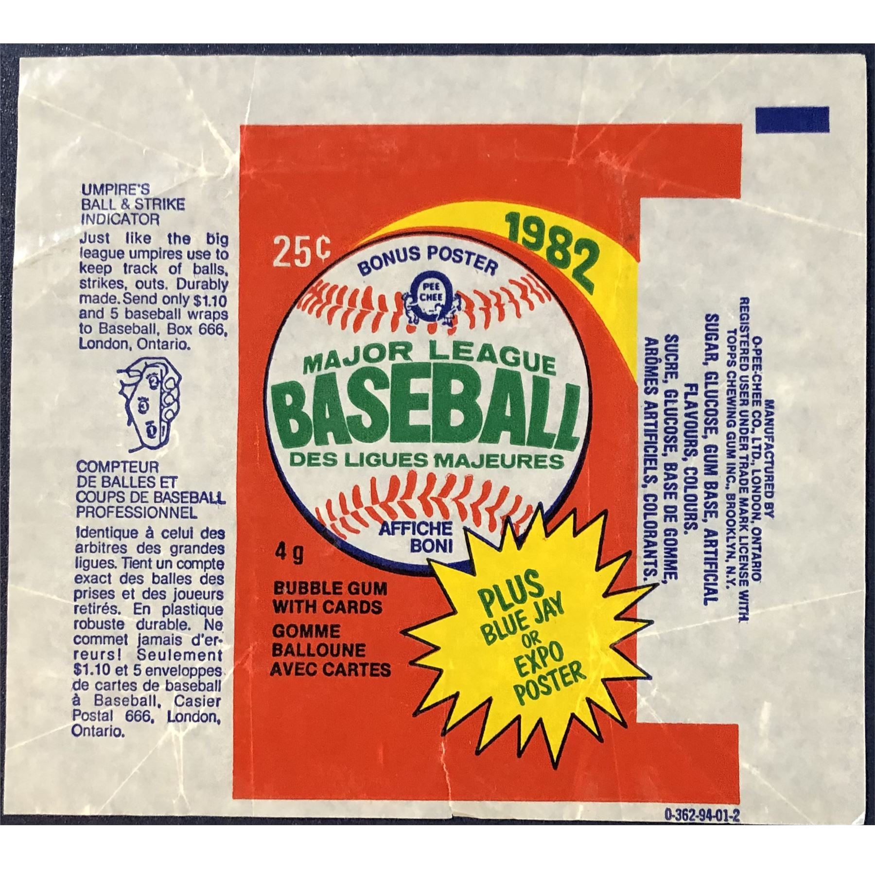 1982 O-PEE-CHEE BASEBALL WRAPPER