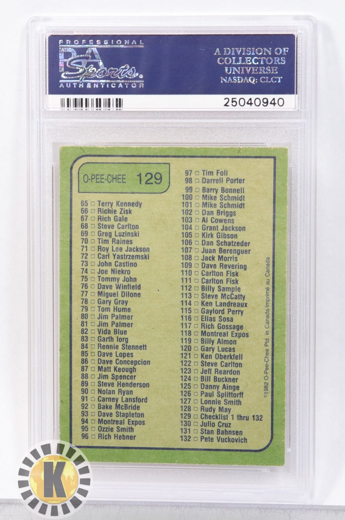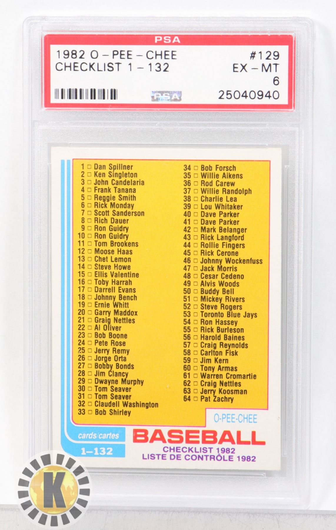 1982 O-PEE-CHEE CHECKLIST 1-132 PSA GRADED 6 CARD