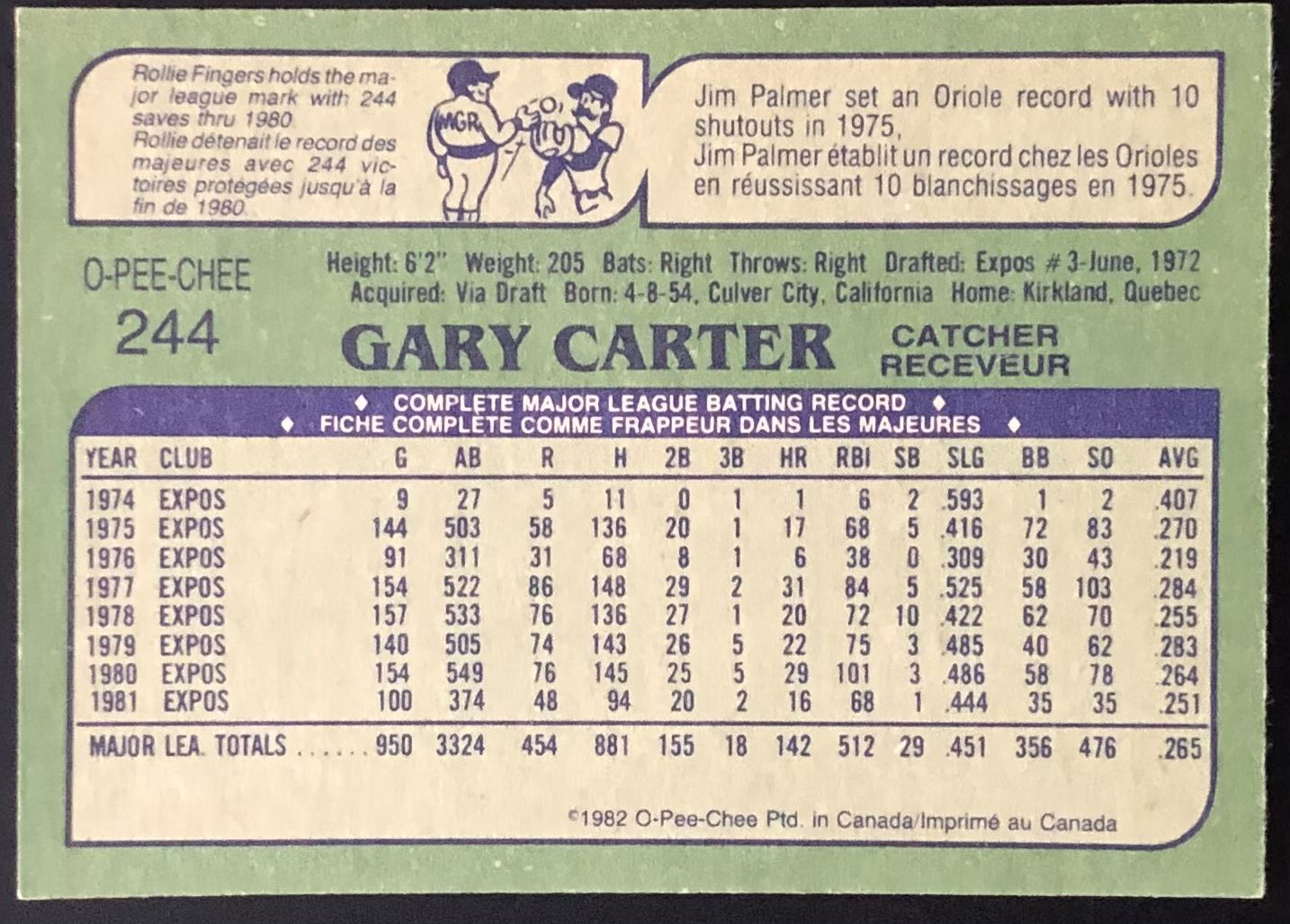 Card #244 OPC, MLB, baseball, hall of fame