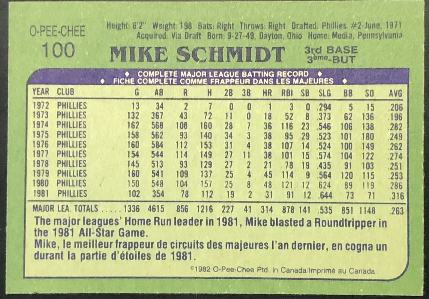 Card #100 MLB, baseball, vintage, OPC, hall of fame