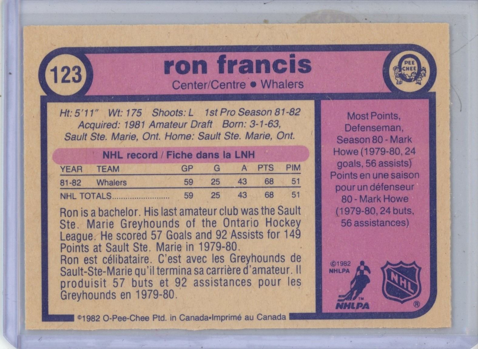1982 O-Pee-Chee - Whalers - Ron Francis - Rookie Card #123.