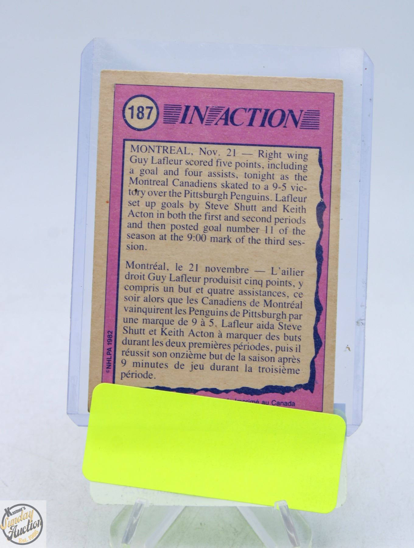 1982 OPC GUY LAFLEUR HOCKEY CARD