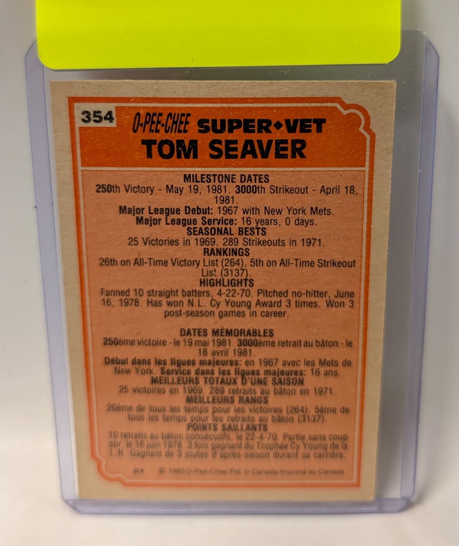 1982 OPC TOM SEAVER HOF BASEBALL CARD