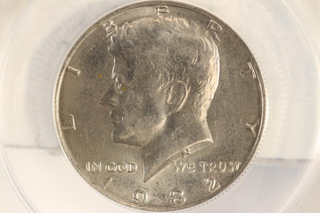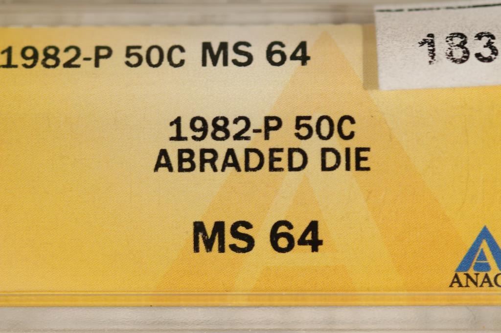 1982-P ABRADED DIE KENNEDY HALF DOLLAR ANACS MS64