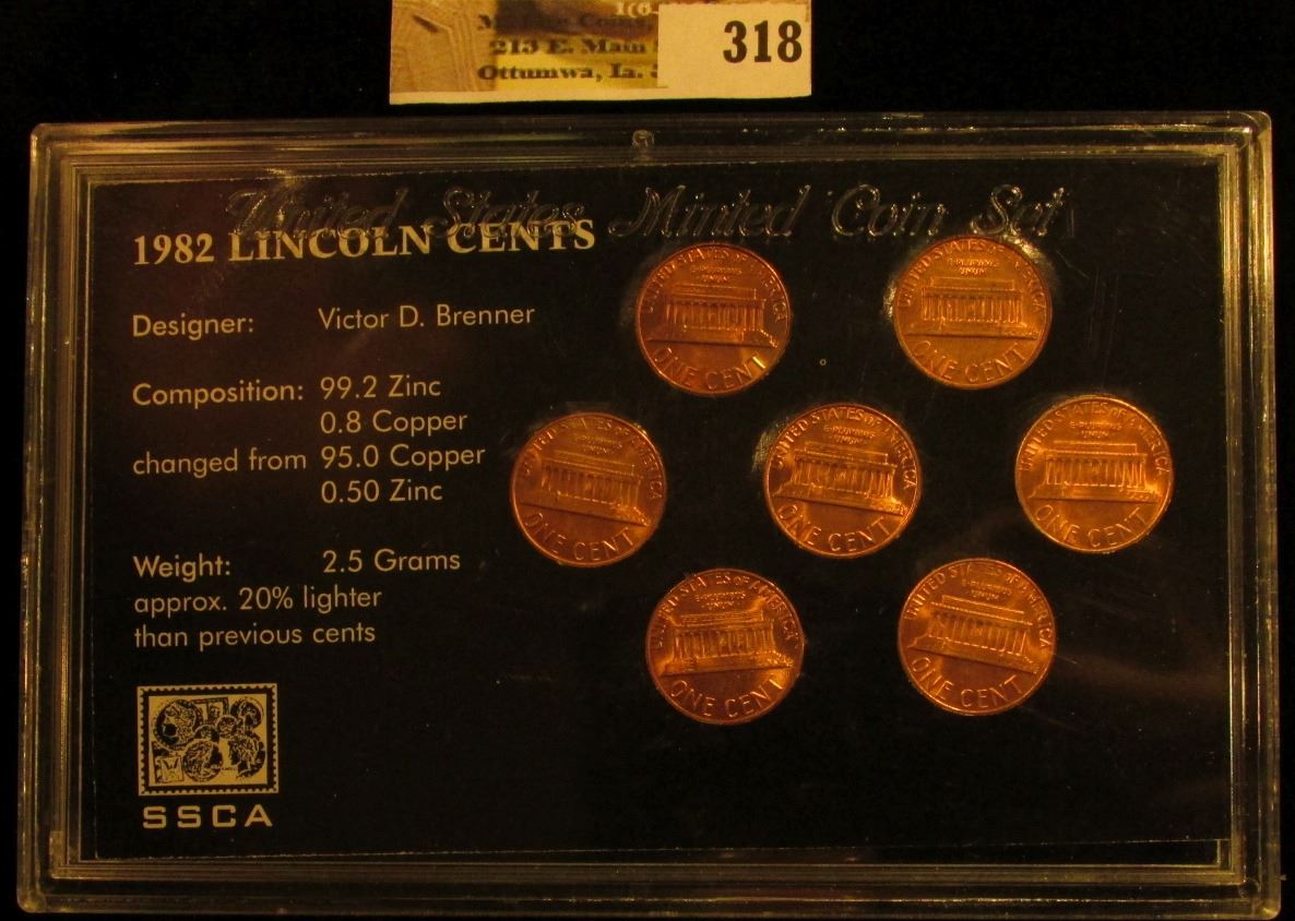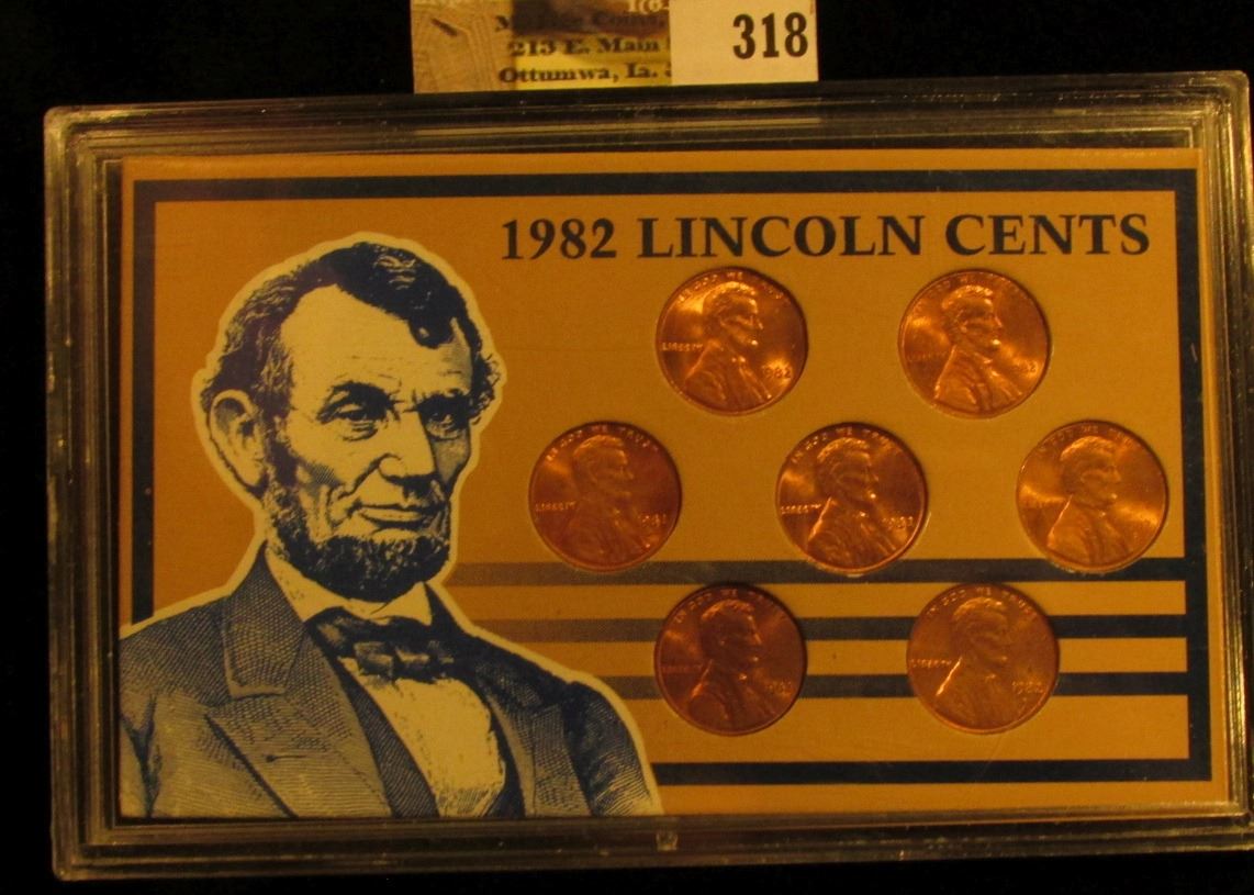 1982 P & D Seven-piece Variety Cent Set, Brilliant Uncirculated in a plastic case.