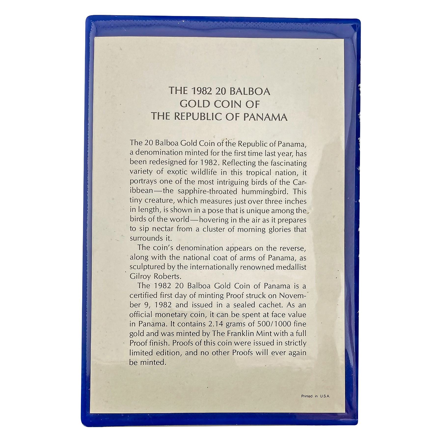1982 Panama Gold 20 Balboa .0344oz