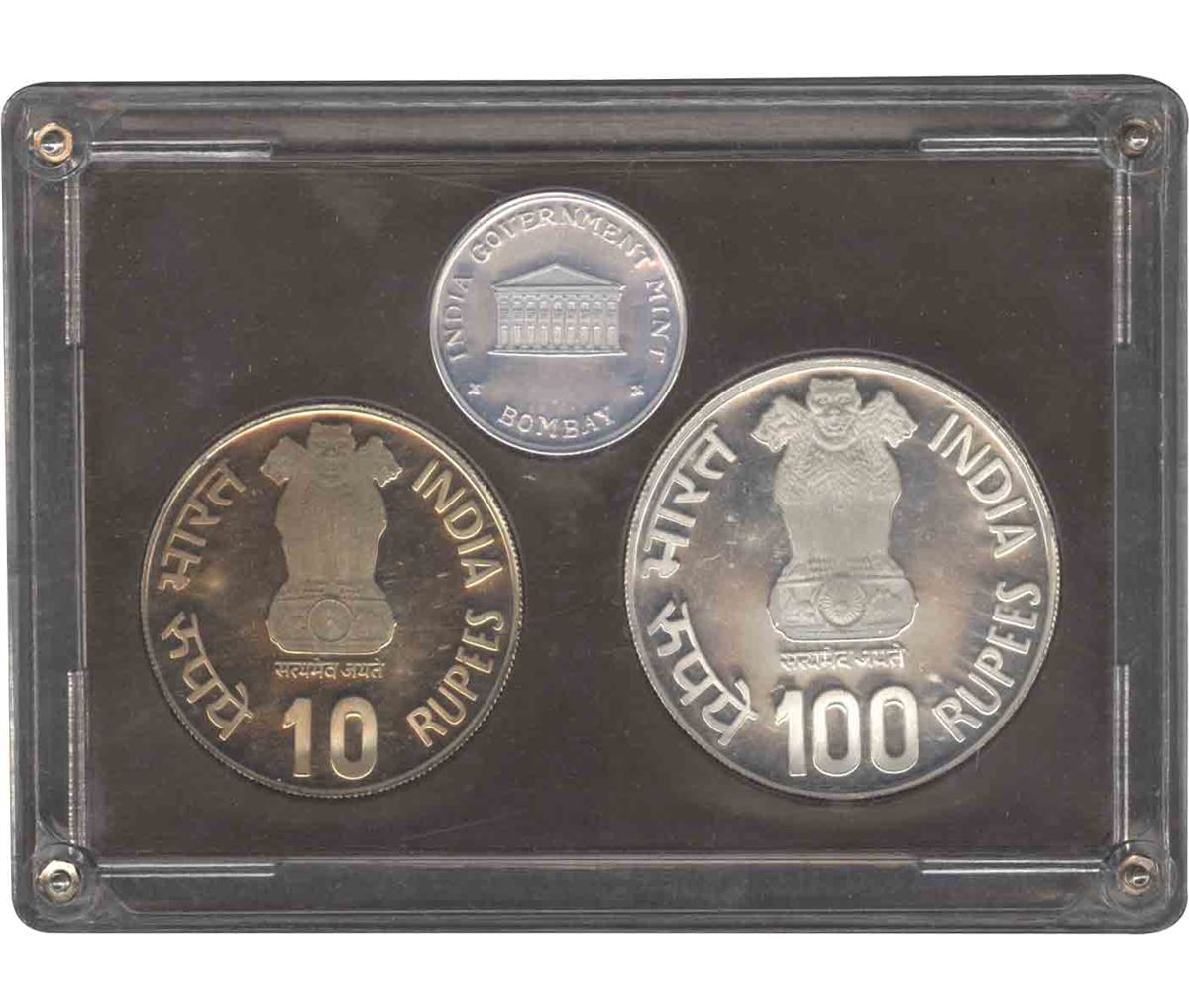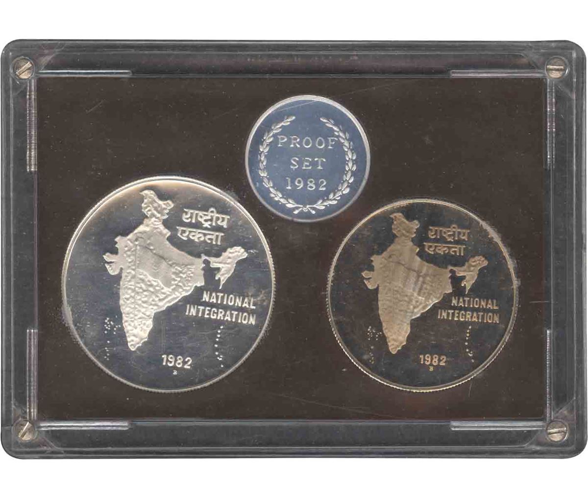 1982, Proof Set, National Integration, 100 Rs and 10 Rs, Bombay Mint, (RB # 98),intact condition of the certificate and cover with acrylic case, Rare.