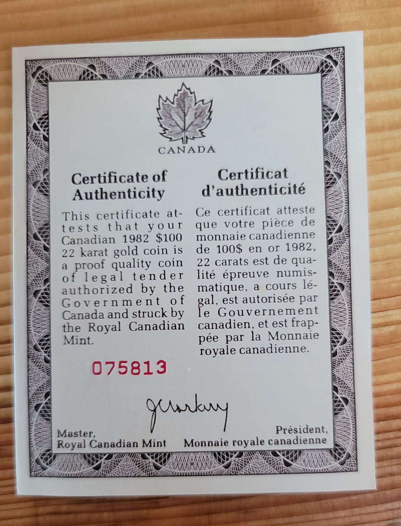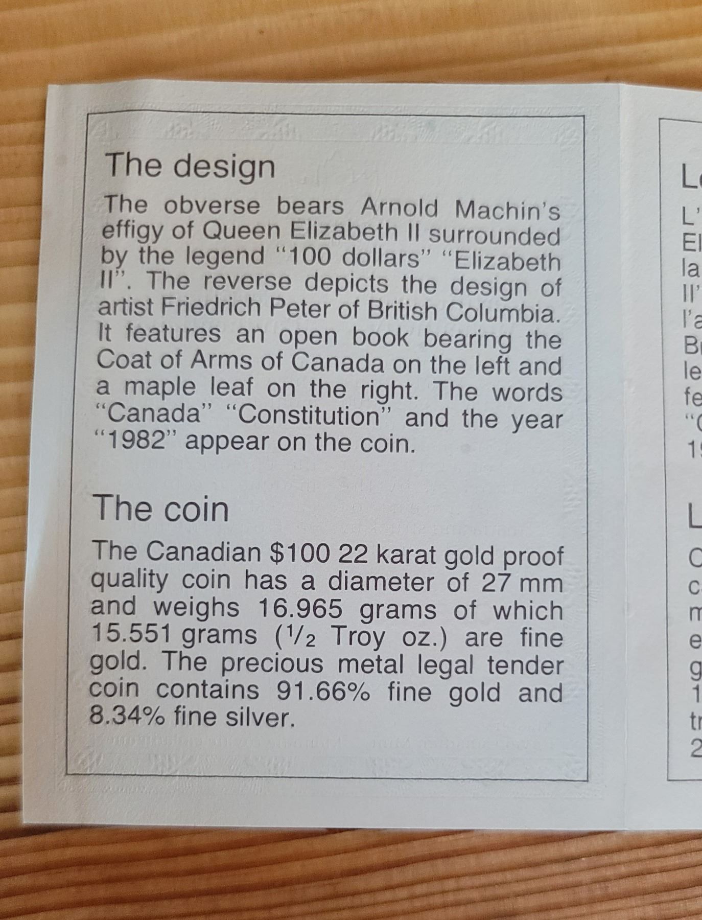 Half ounce of 22 karat gold proof coin in protective case and presentation box.