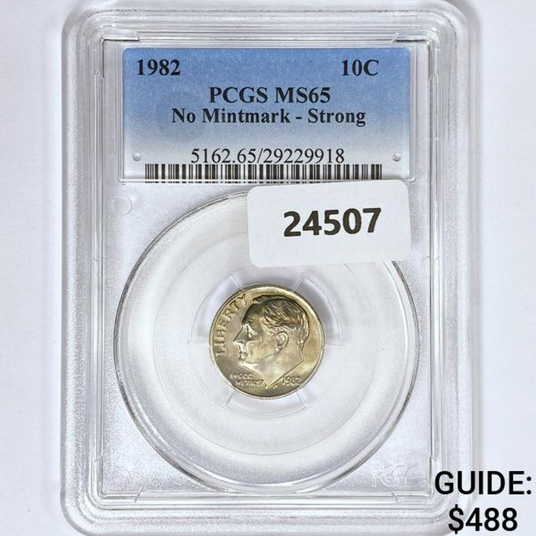1982 Roosevelt Dime PCGS MS65 No Mintmark - Strong
