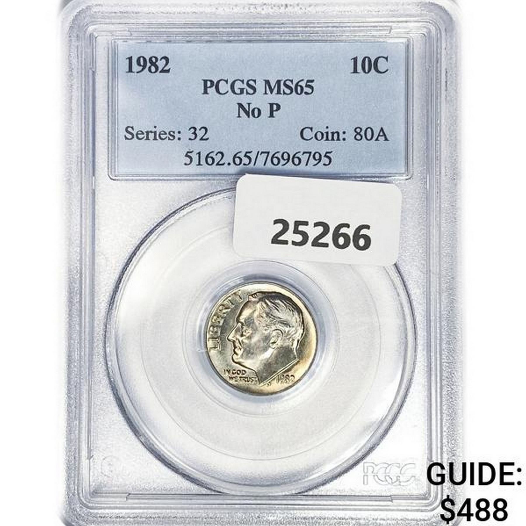 1982 Roosevelt Dime PCGS MS65 No P